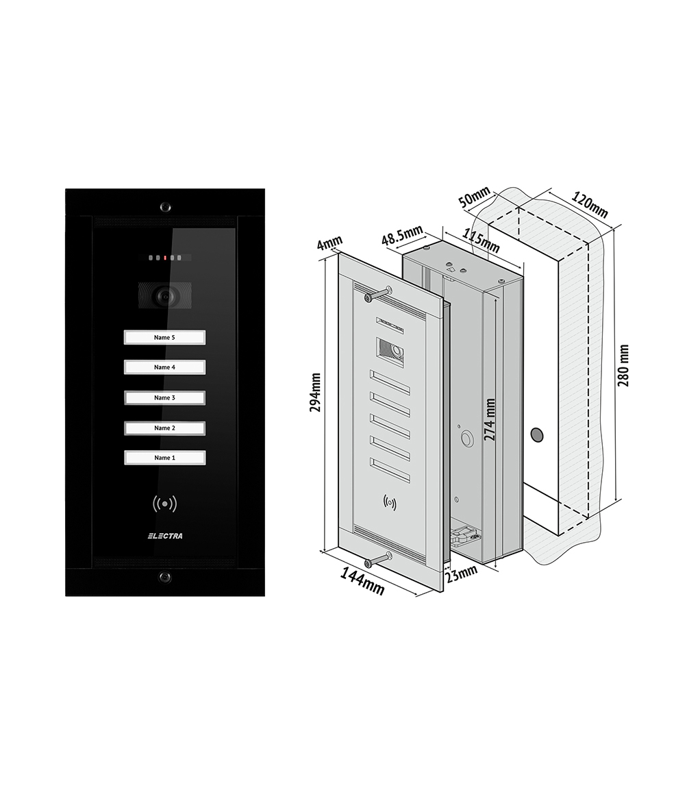 Tastatura Touch capacitiva dezvoltata de ELECTRA este cu adevarat smart, atat din punct de vedere estetic, cat si functional. Tasta de apel are o suprafata generoasa, integrand si afisarea uniform iluminata a numelui. Solutia tehnica implementata asigura functionarea foarte